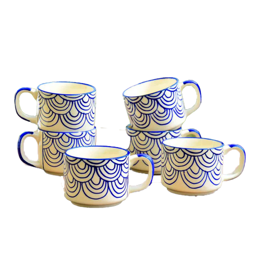 Hand panited blue ceramic mugs